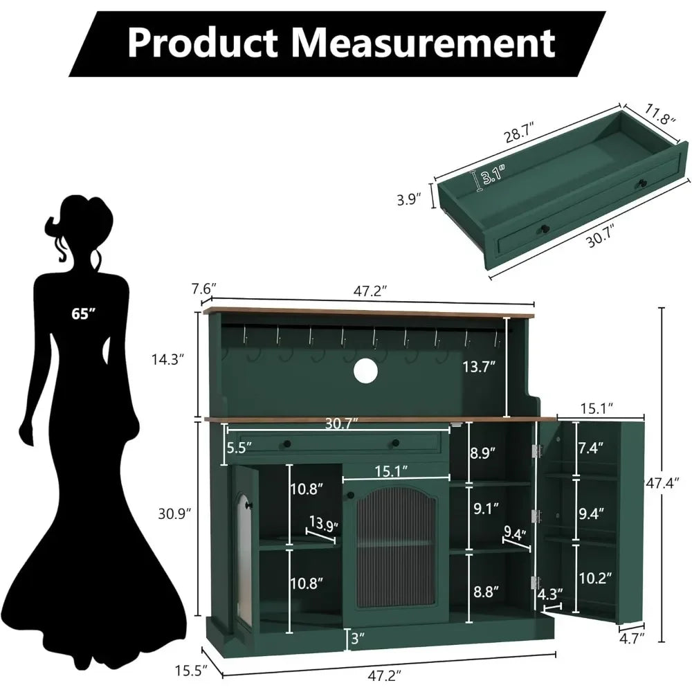 - Generous footprint at 47.2"W x 47.4"H x 15.5"D fits a dedicated coffee station or bar nook, with a stable base and a built‑in cable hole to manage cords for under‑counter devices.