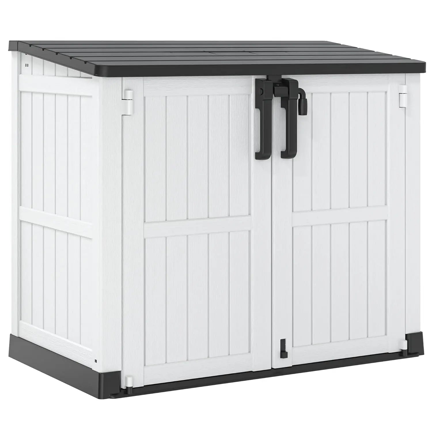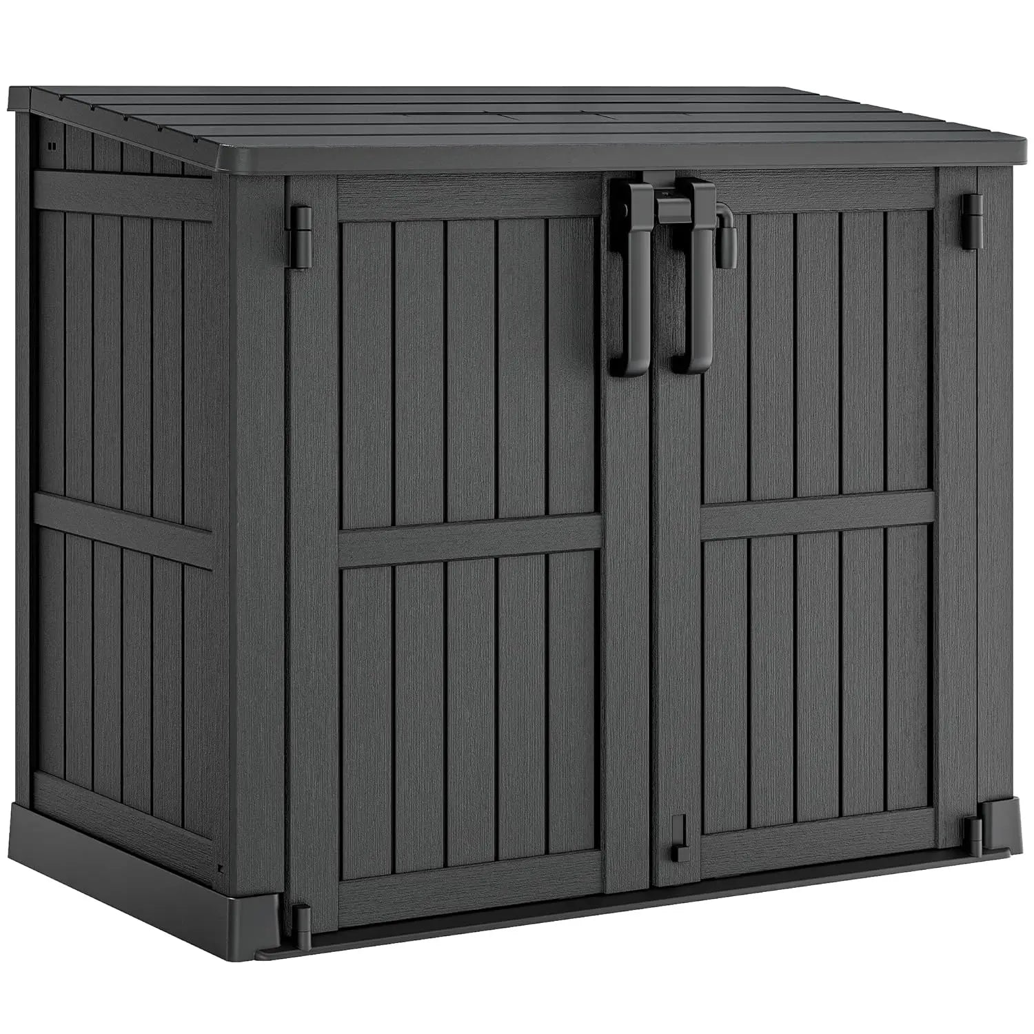 - Contemporary design fits neatly on patios, decks, or garages, offering versatile storage for gardening tools, outdoor toys, cleaning supplies, and seasonal decor.