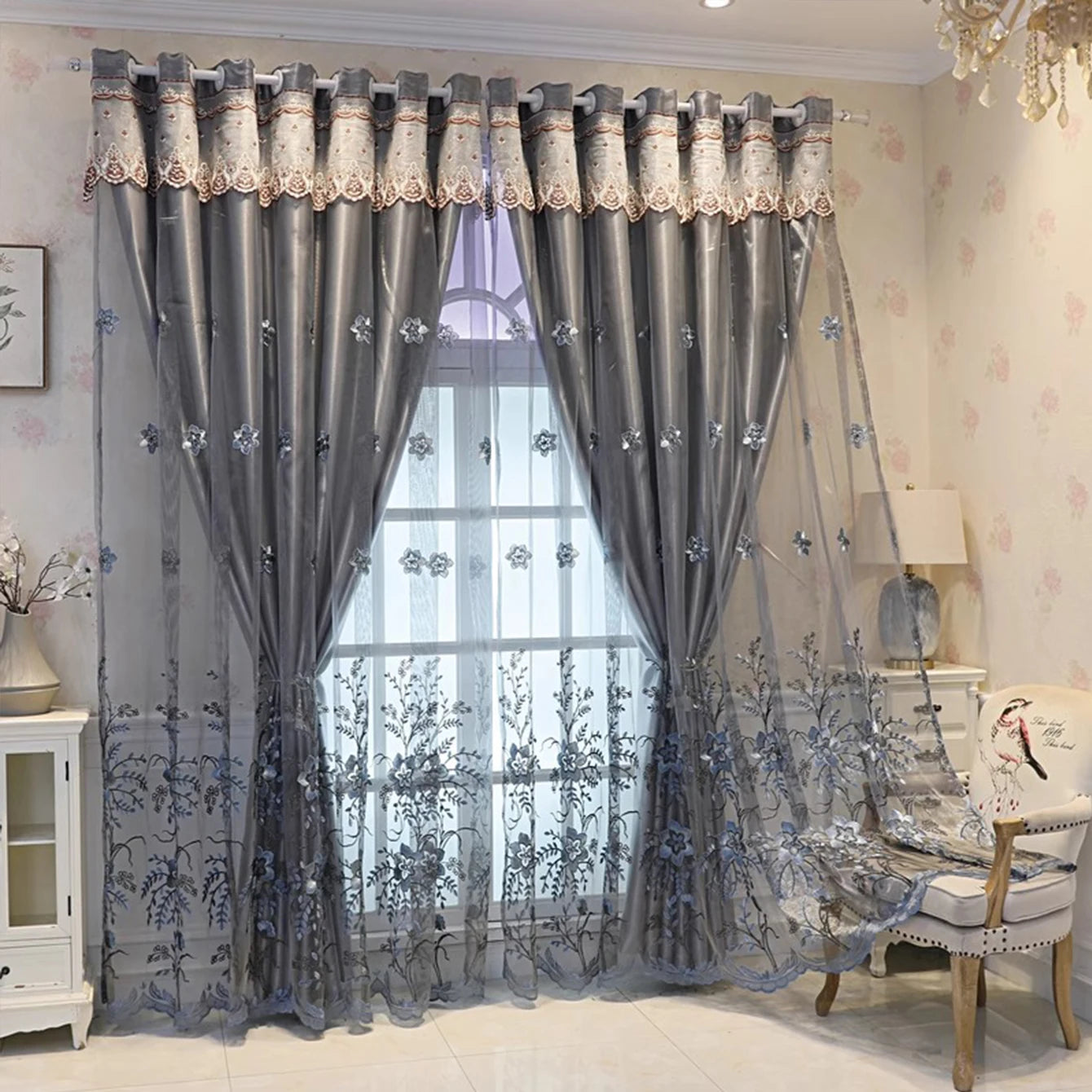 Plant Flower Blackout Curtain Cloth Nordic Simple Bedroom Living Room Balcony Atmospheric Double Layer