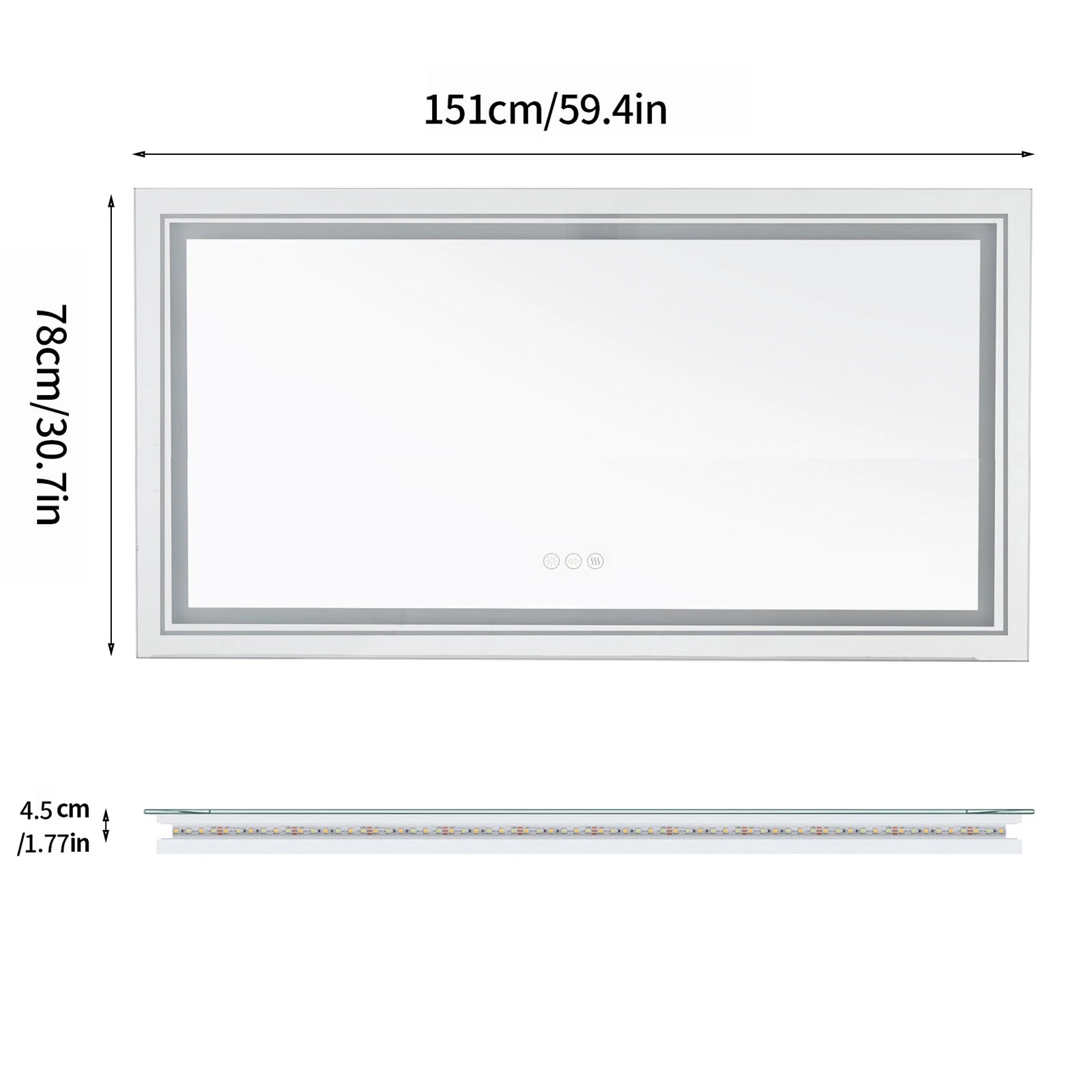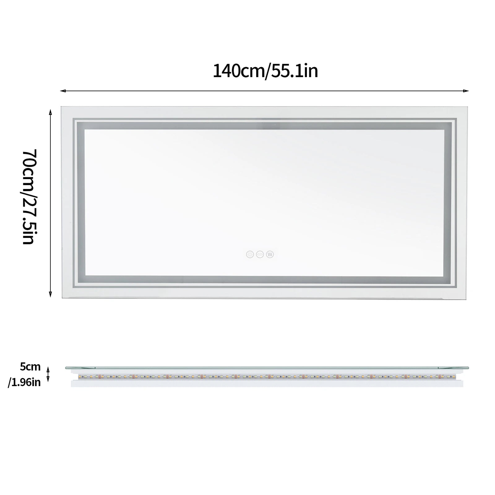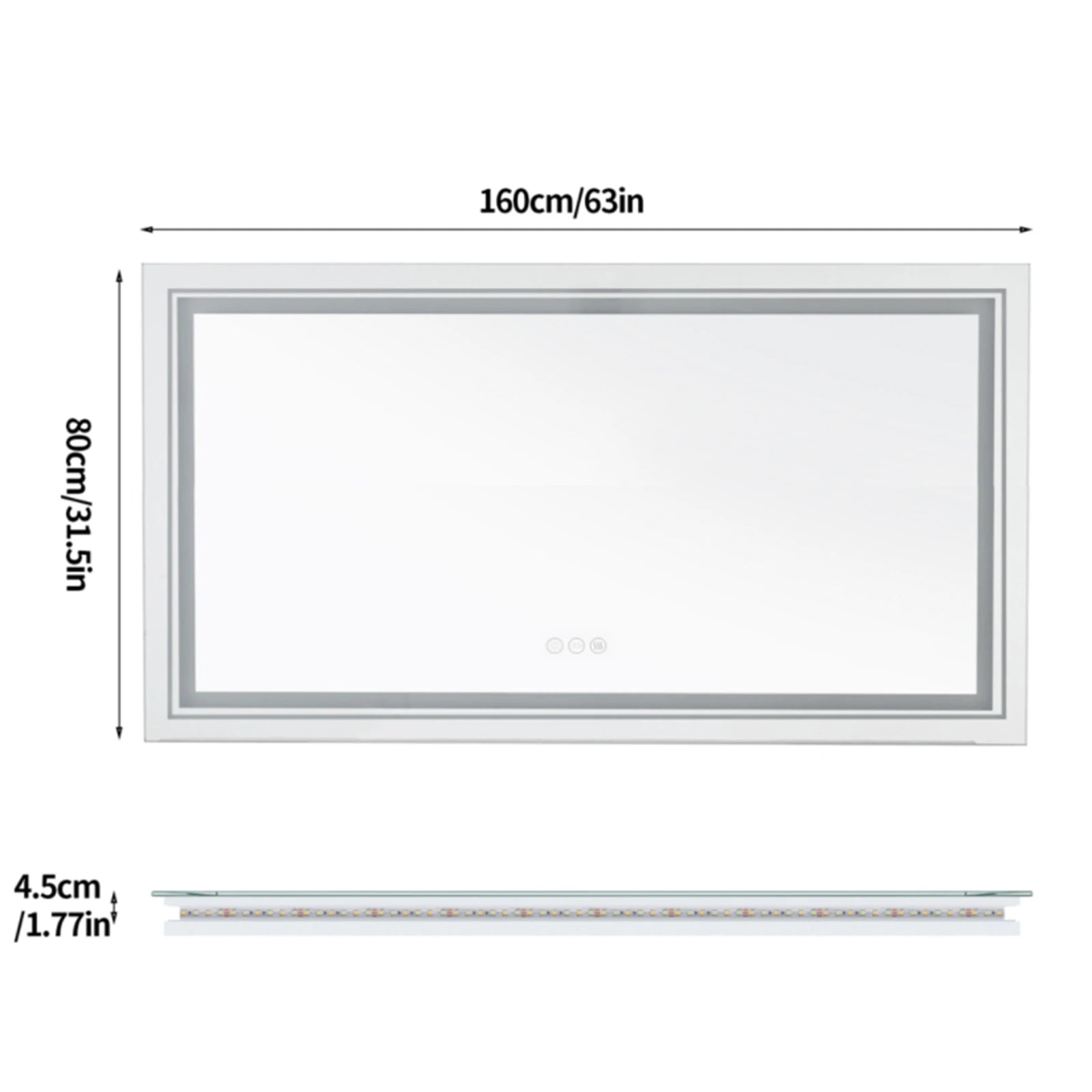 BORWART Illuminated Fogless Rectangular Bathroom Mirror